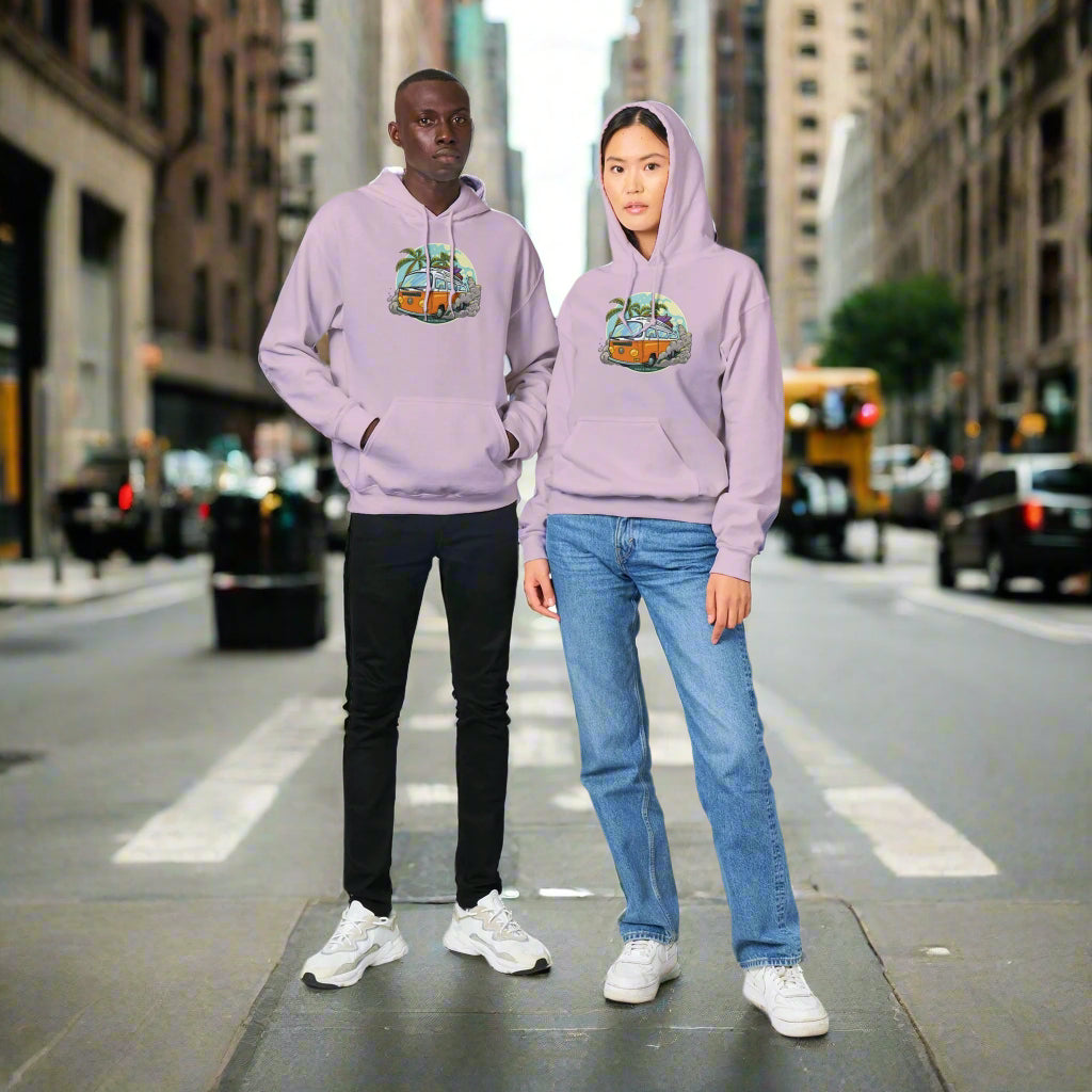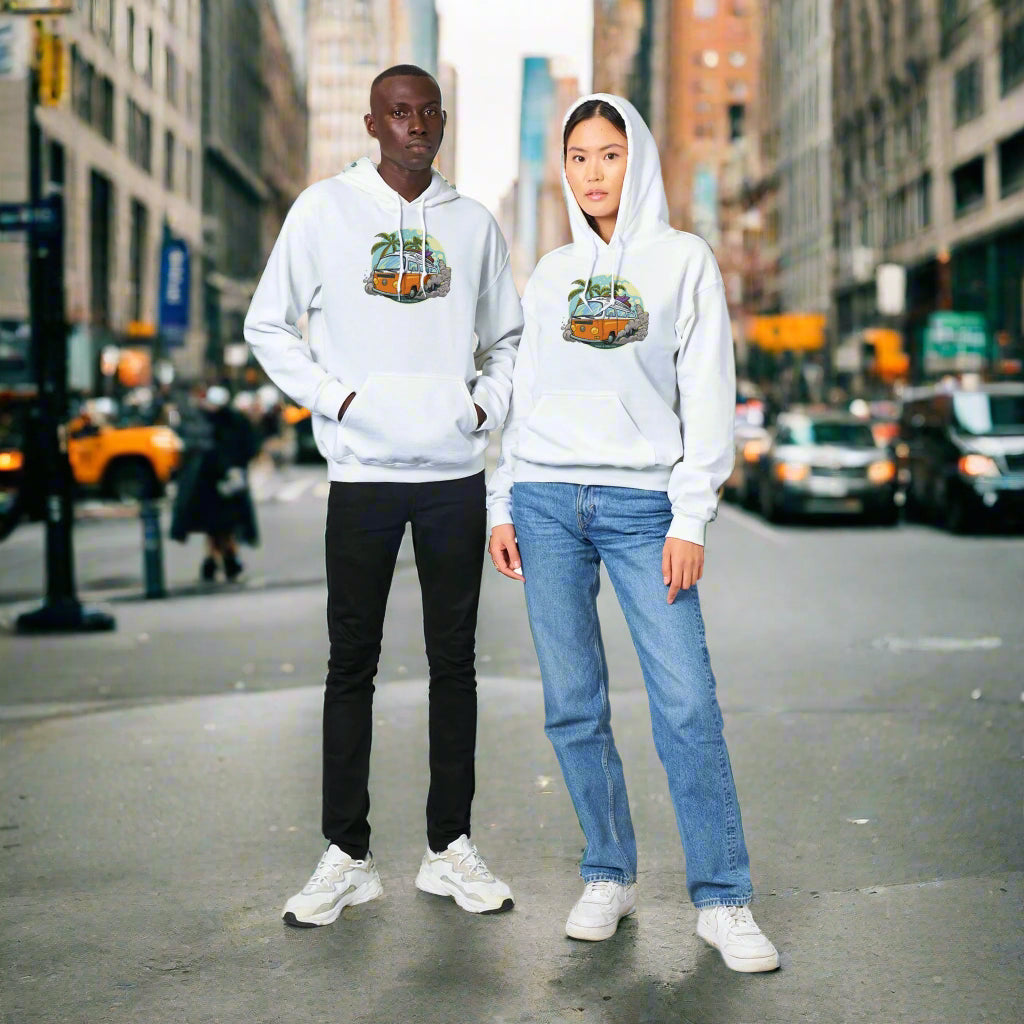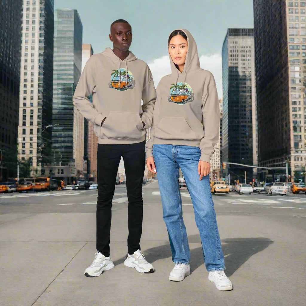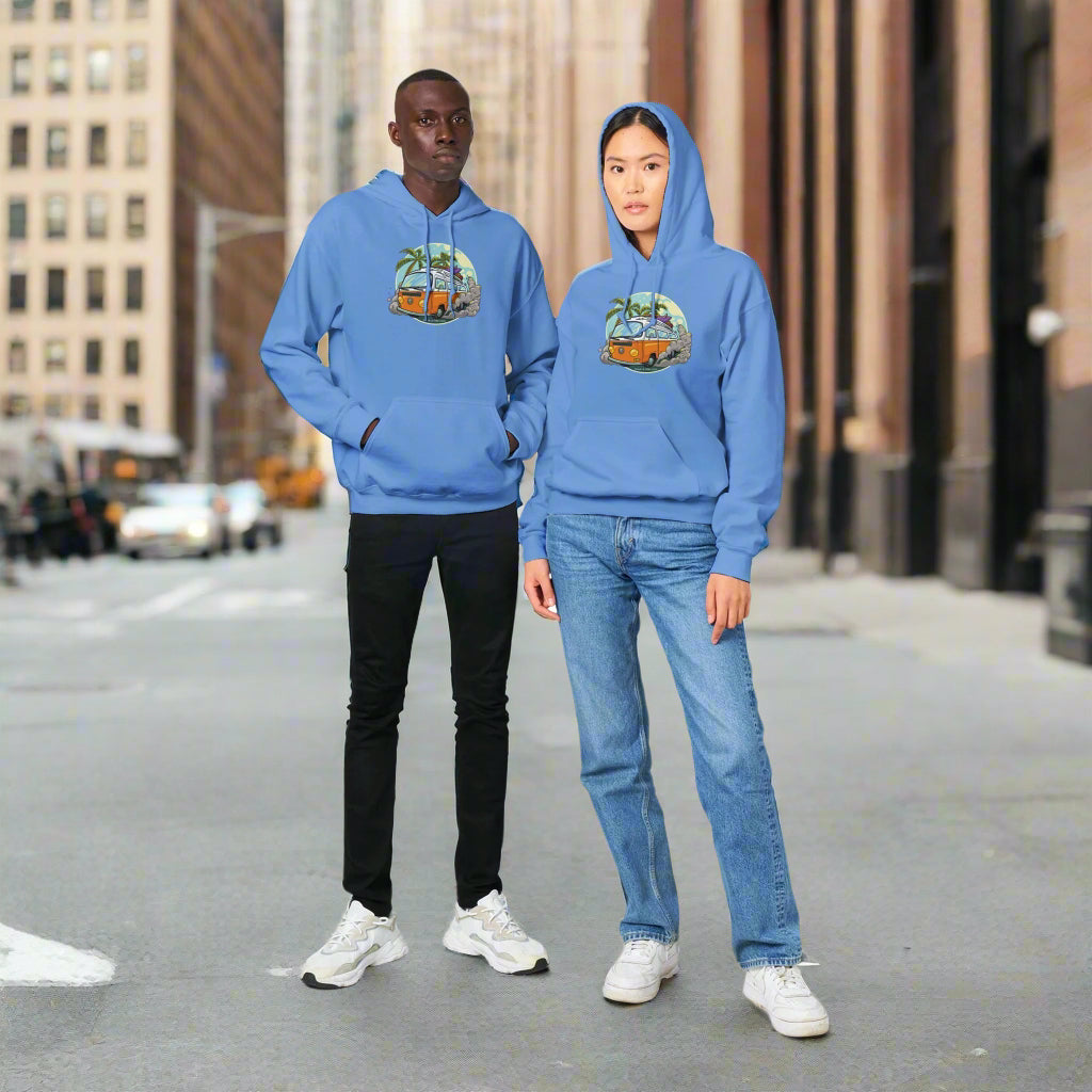 A classic hoodie with a large front pouch pocket and drawstrings in matching color.