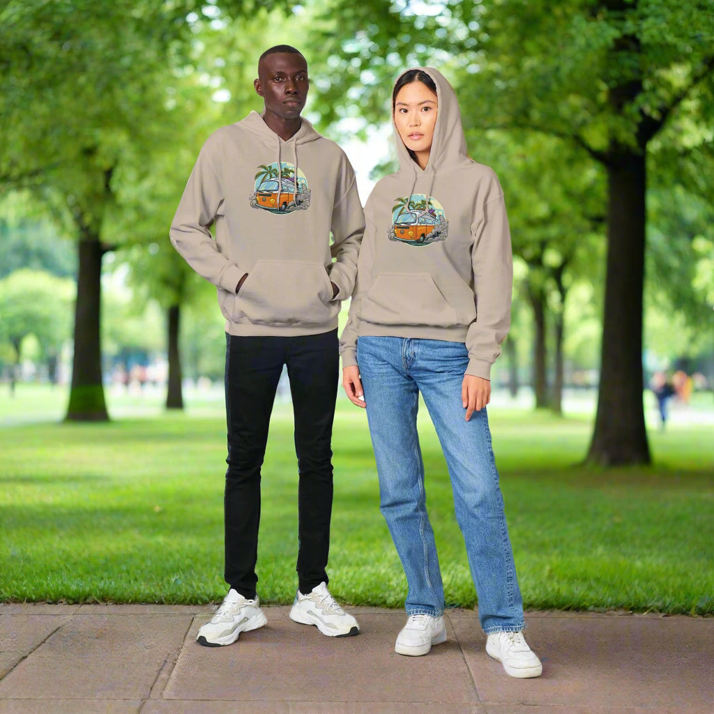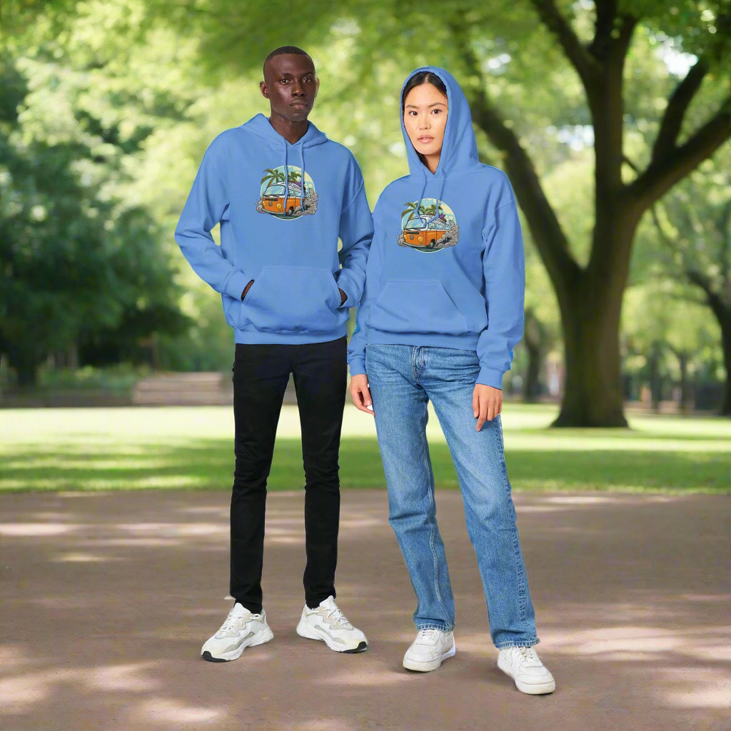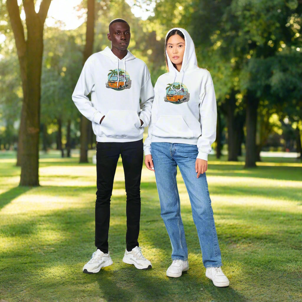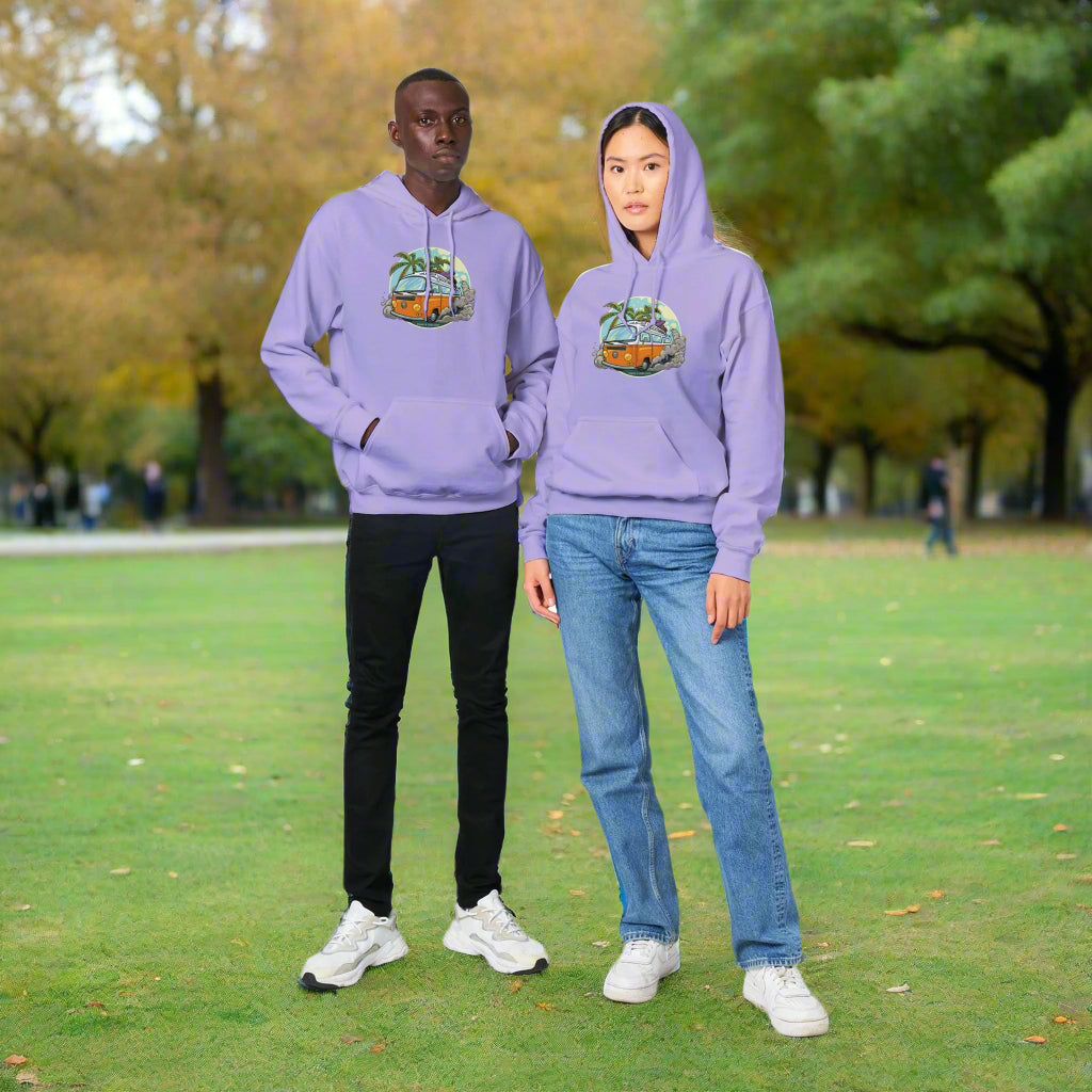 A classic hoodie with a large front pouch pocket and drawstrings in matching color.
