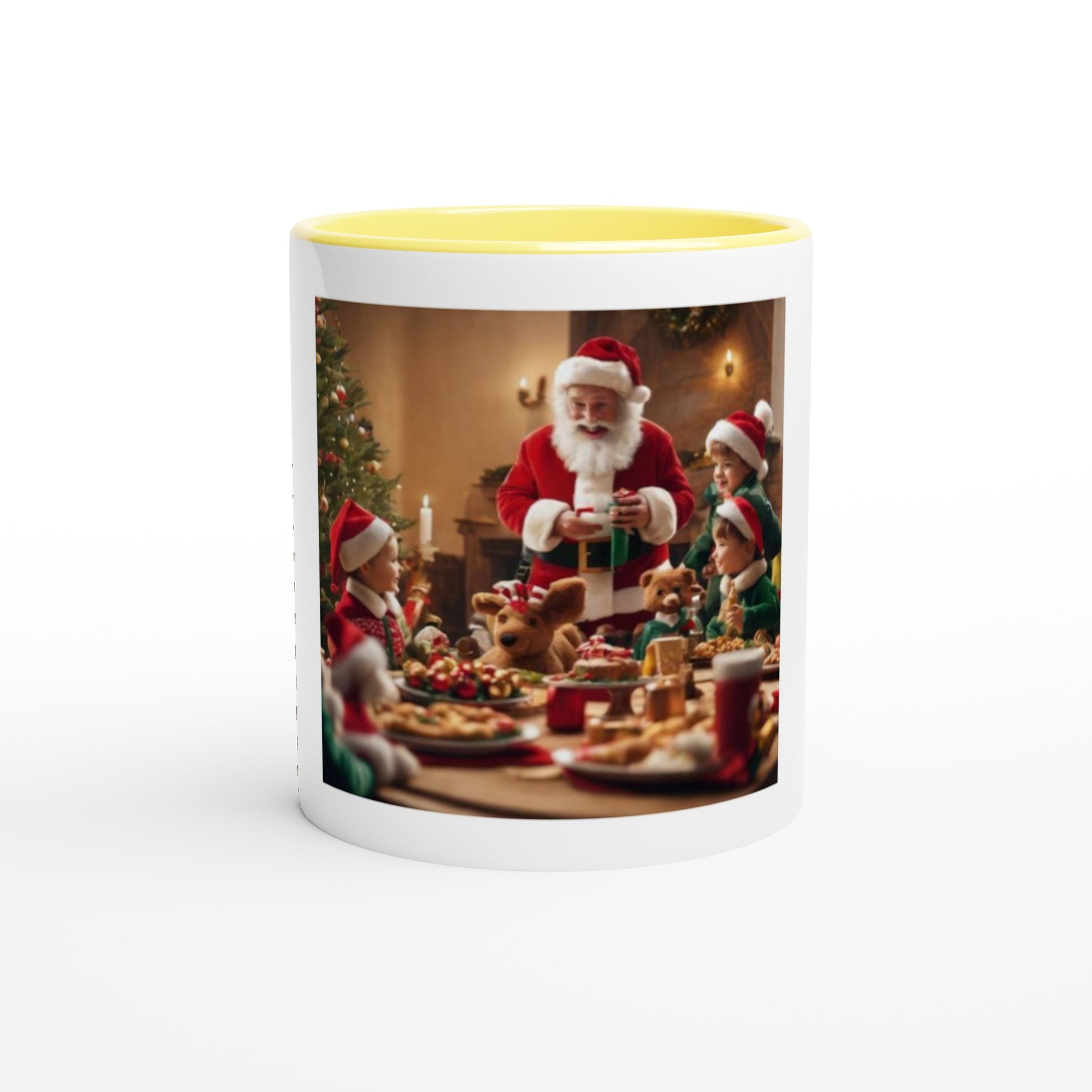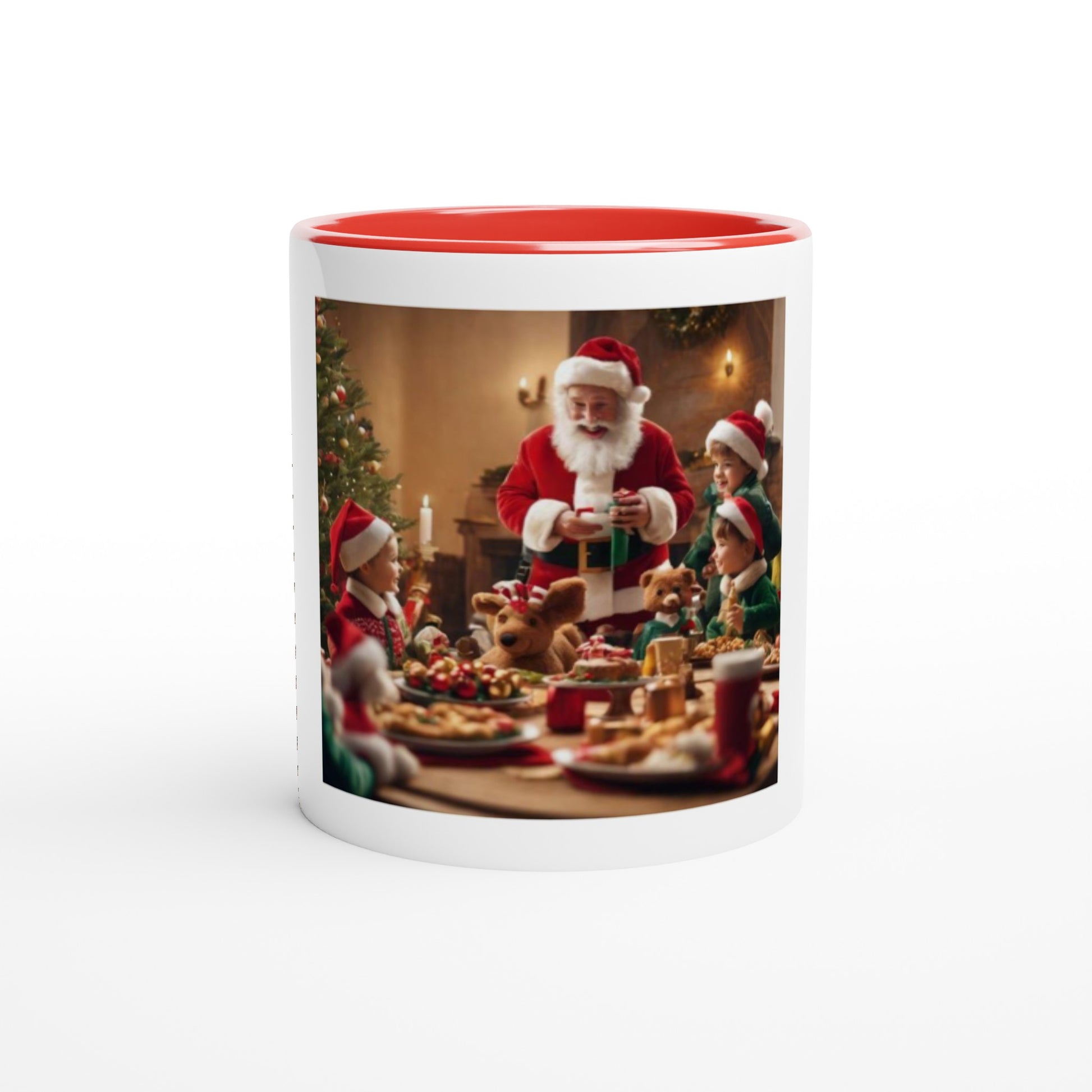 This beautiful ceramic mug is perfect for any event of the day. Your morning coffee, a hot chocolate, or any other hot beverage you enjoy. The mug is glossy white with a colored rim, inside, and handle. The prints come out beautifully and vividly on it. The print retains its quality and luster when used in both microwaves and the dishwasher.