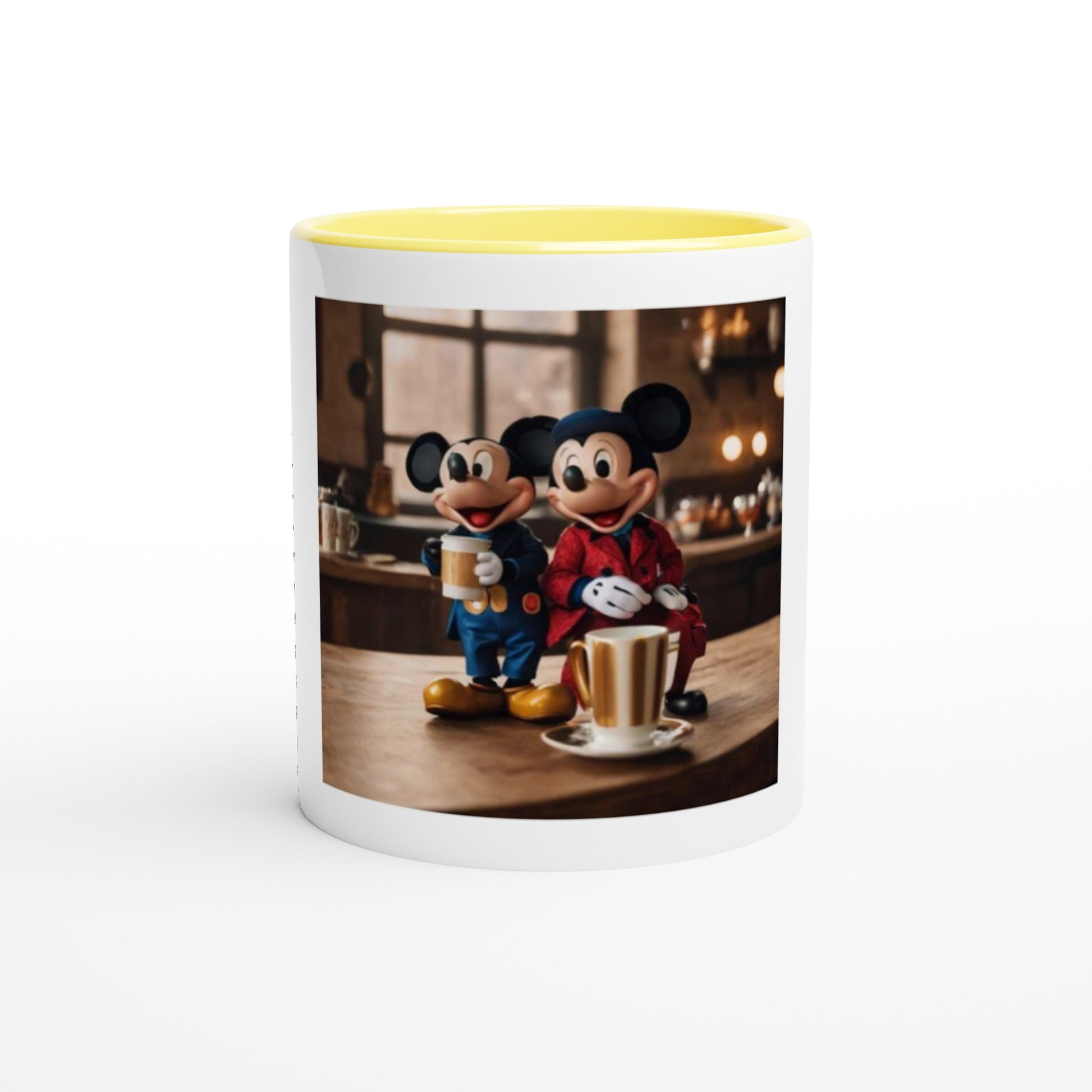 This beautiful ceramic mug is perfect for any event of the day. Your morning coffee, a hot chocolate, or any other hot beverage you enjoy. The mug is glossy white with a colored rim, inside, and handle. The prints come out beautifully and vividly on it. The print retains its quality and luster when used in both microwaves and the dishwasher.