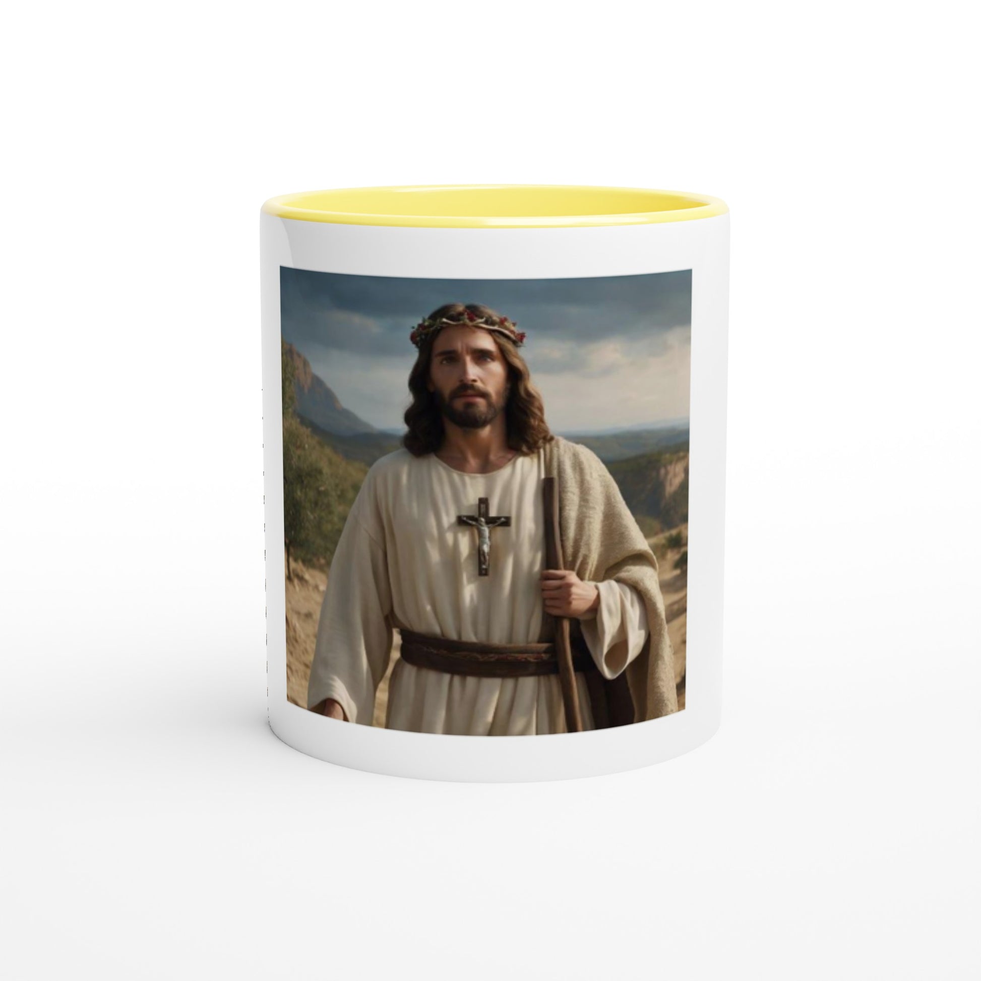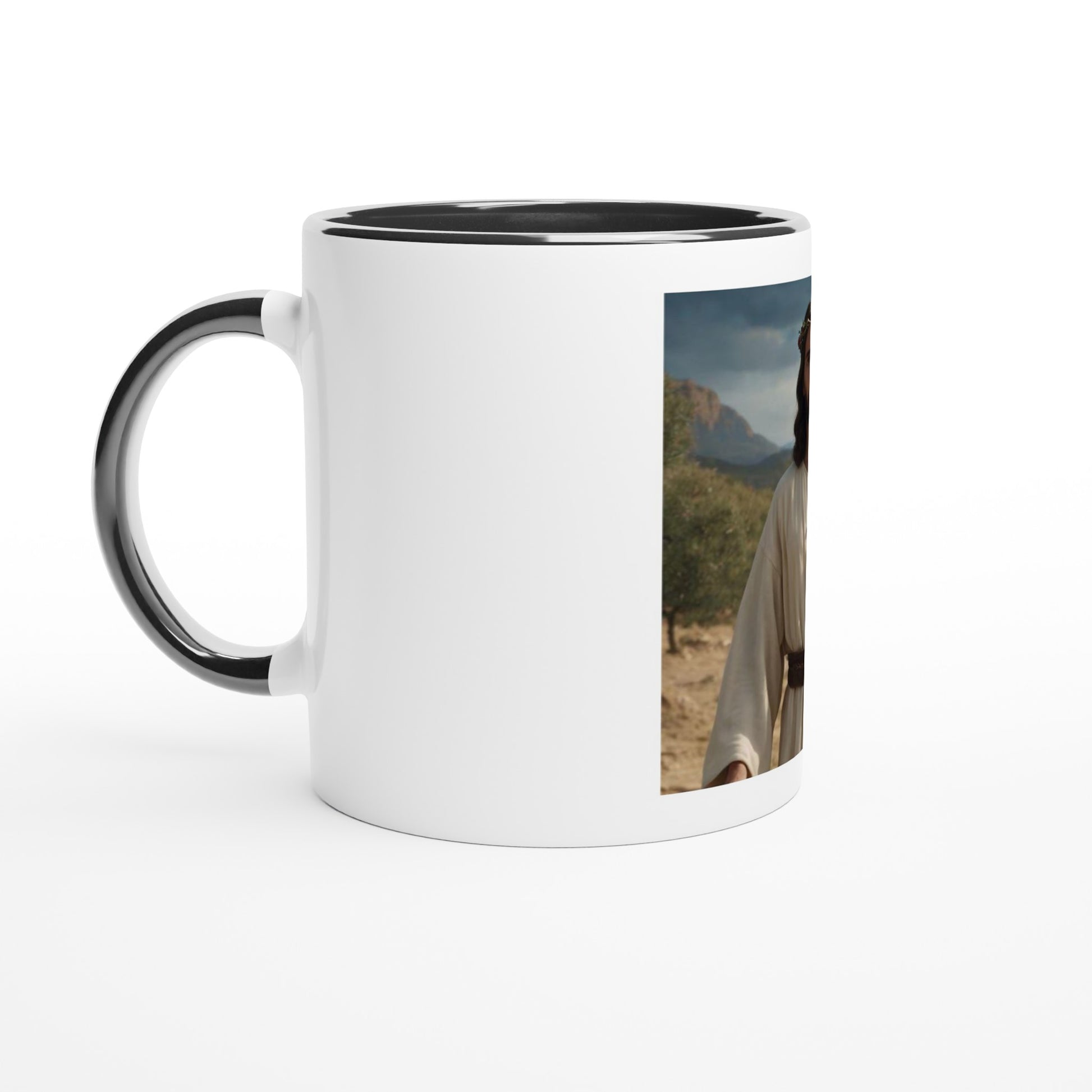 This beautiful ceramic mug is perfect for any event of the day. Your morning coffee, a hot chocolate, or any other hot beverage you enjoy. The mug is glossy white with a colored rim, inside, and handle. The prints come out beautifully and vividly on it. The print retains its quality and luster when used in both microwaves and the dishwasher.
